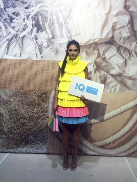 Pictured: Mondi’s fancy IQ Color dress opened the fashion show impressing with its bright and intense colours.