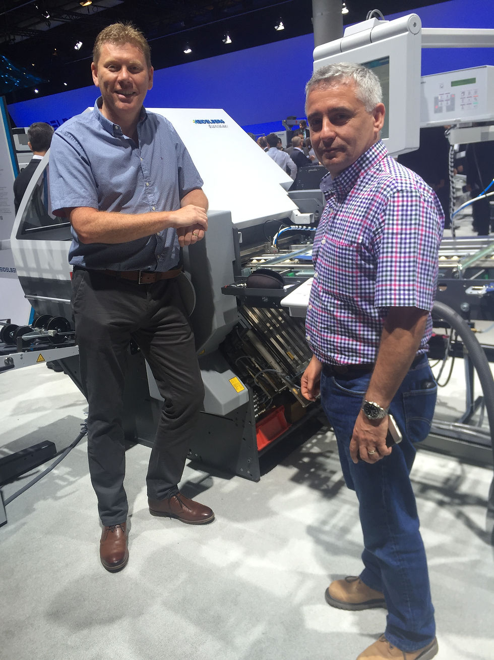 Joint managing directors of Crewe Colour Printers Phil Edwards and Simon Hughes signed an order at drupa for a Versafire CV digital press and an automated Stahlfolder CH 66.