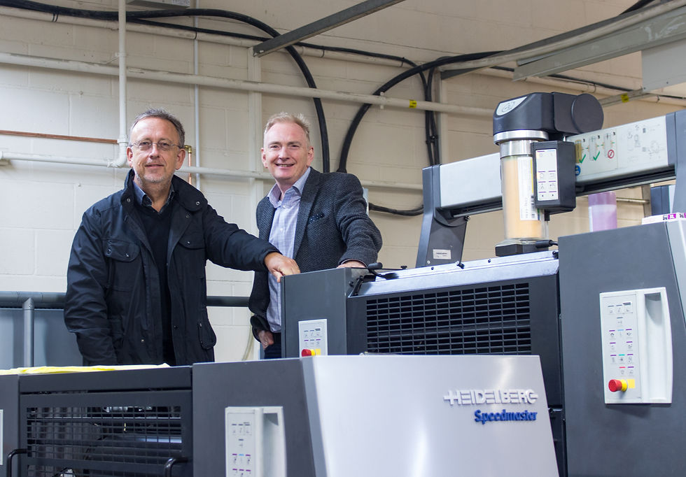Adverset chairman Nick Thomas (left) inspects the press with managing director John Easby.